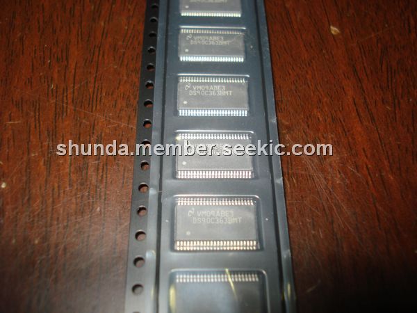 DS90C363BMT features: (1)No special start-up sequence required between clock/data and /PD pins. Input signal (clock and data) can be applied either before or after the device is powered; (2)Support Spread Spectrum Clocking up to 100kHz; (3)frequency modulation & deviations of ±2.5% center; (4)spread or -5% down spread; (5)18 to 68 MHz shift clock support; (6)Best–in–Class Set & Hold Times on TxINPUTs; (7)Tx power consumption < 130 mW (typ) @65MHz Grayscale; (8)40% Less Power Dissipation than BiCMOS Alternatives; (9)Tx Power-down mode < 37μW (typ); (10)Supports VGA, SVGA, XGA and Dual Pixel SXGA; (11)Narrow bus reduces cable size and cost; (12)Up to 1.3 Gbps throughput; (13)Up to 170 Megabytes/sec bandwidth; (14)345 mV (typ) swing LVDS devices for low EMI; (15)PLL requires no external components; (16)Compatible with TIA/EIA-644 LVDS standard; (17)Low profile 48-lead TSSOP package; (18)Improved replacement for:SN75LVDS84, DS90C363A.